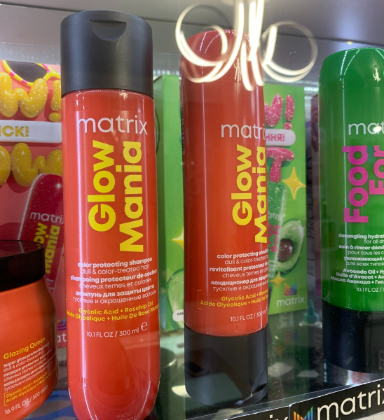Matrix Glow Mania Color Protecting Conditioner for lasting glow. This color-protecting conditioner, with Glycolic Acid and Rosehip Oil, preserves your color glowand hair's shine from inside out for 8 weeks. It instantly detangles, leaving dull & color-treated hair protected, softer and shinier. 300ml